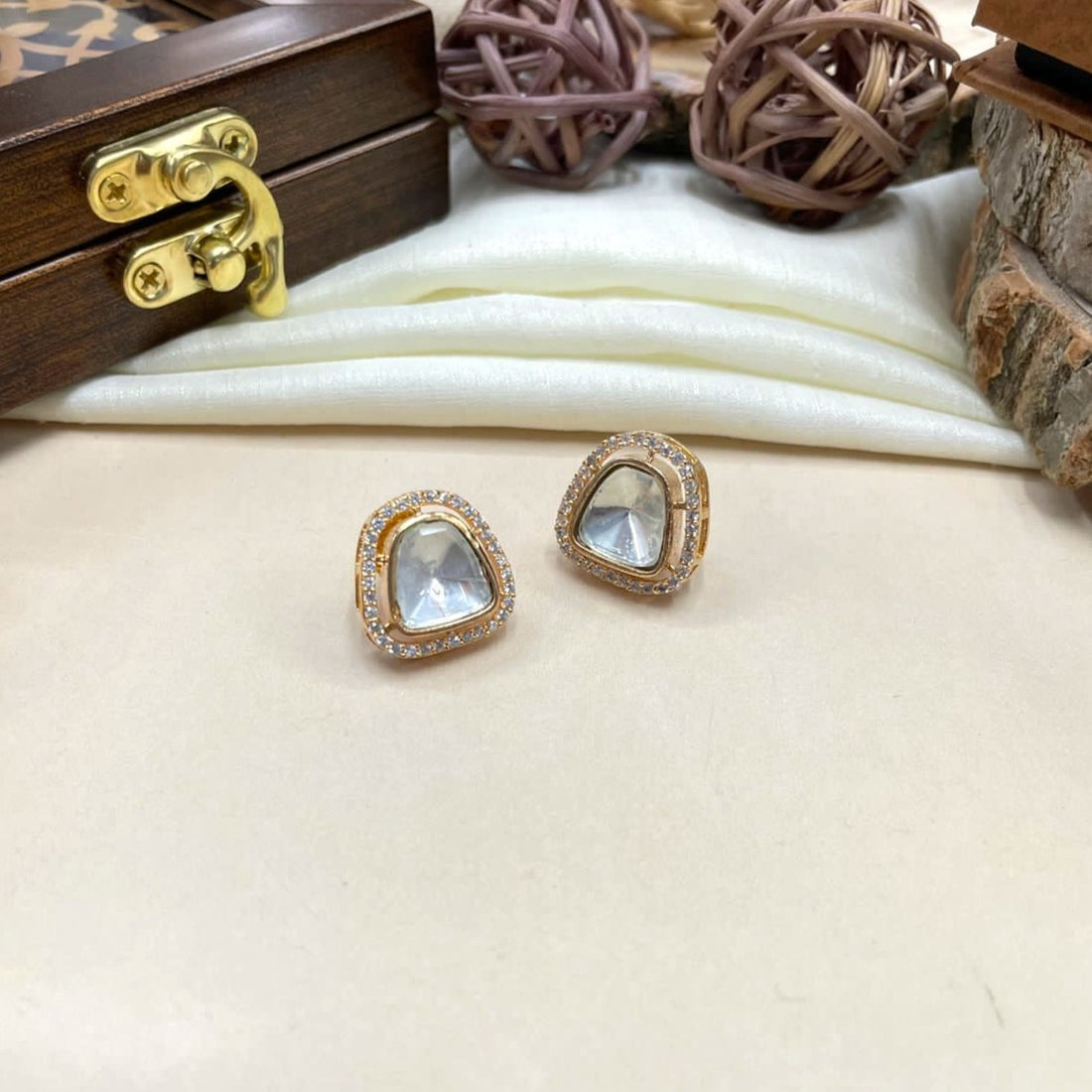 Minimal Gold Plated Glass Kundan Polki Studs PRODUCTS DETAILS Unit - One Pair Of Earrings Metal...