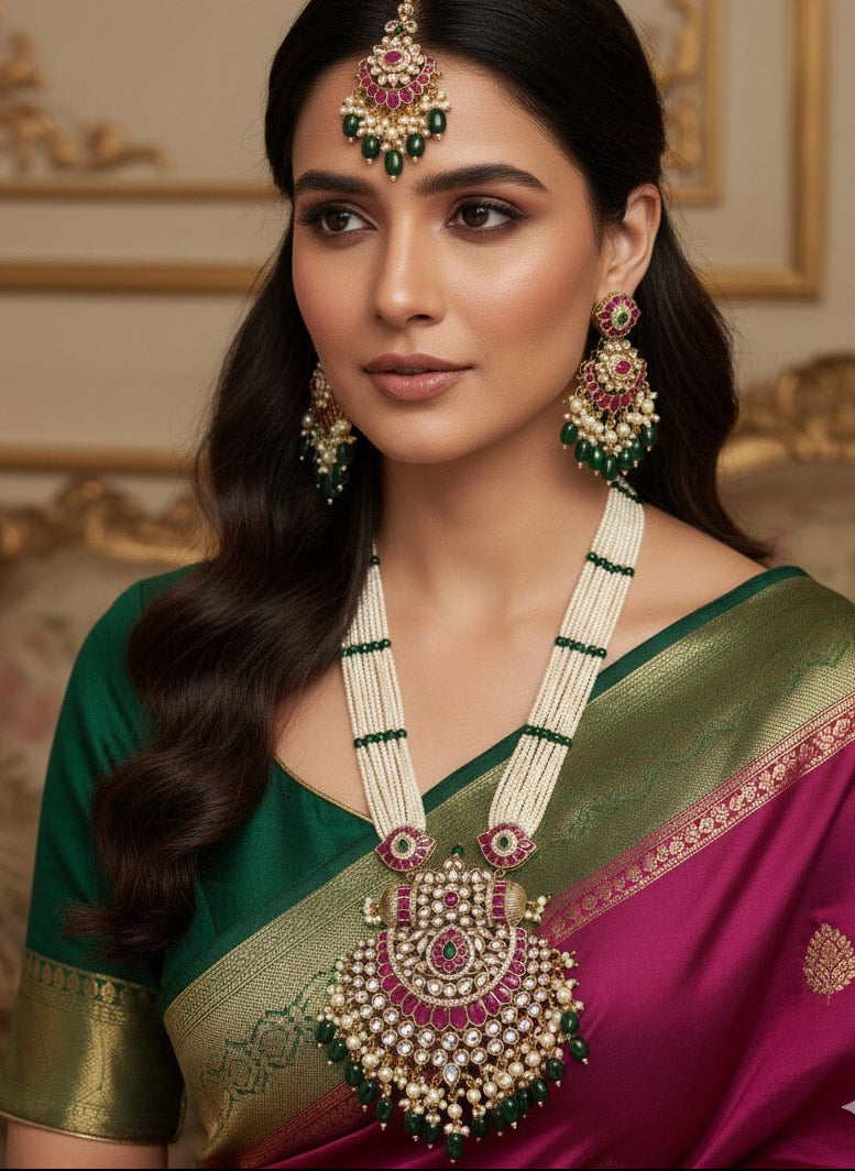 Abdesigns Gold Plated Long Bridal Polki Stone Necklace Set
