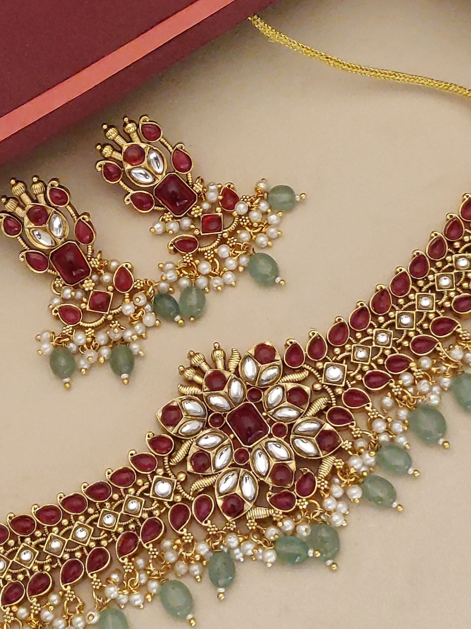 Abdesigns Gold Plated Polki Kundan Necklace Set