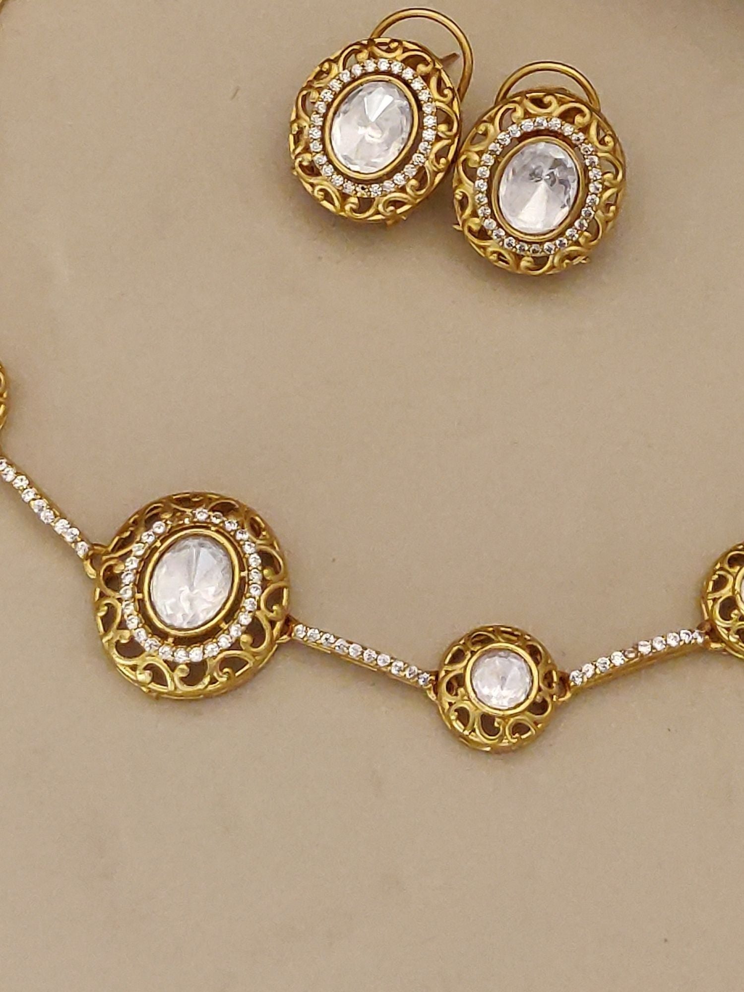 Abdesigns Gold Plated Polki Necklace Set