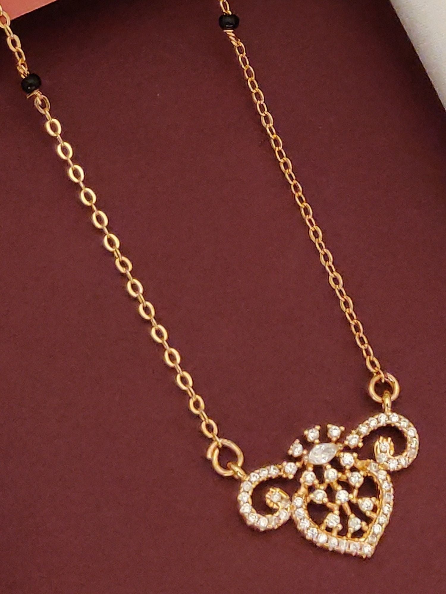 Abdesigns Rose GoldAbdesigns RoseGold Plated American Diamond MangalsutraPlated Black Beads Mangalsutra