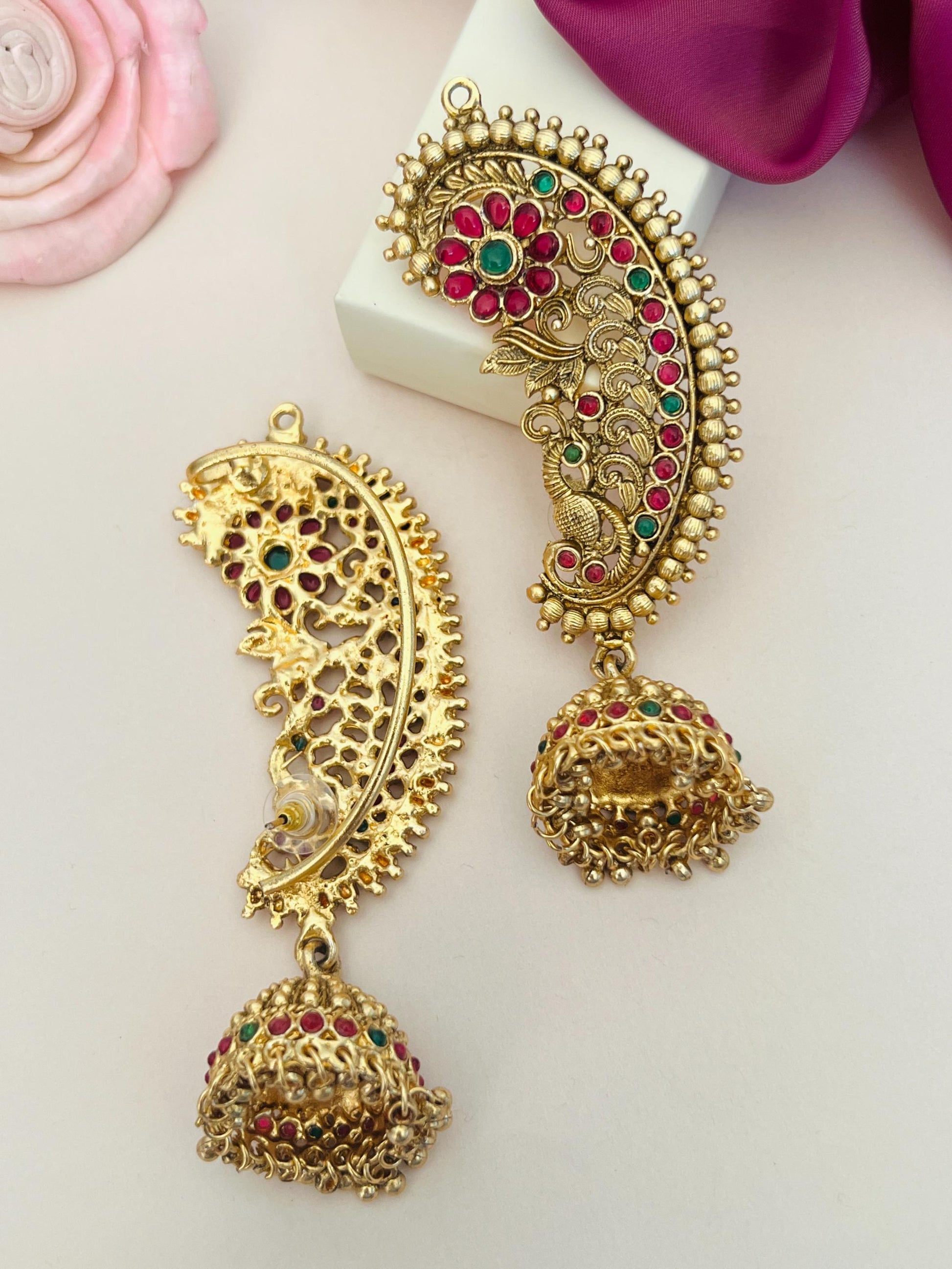 At Abdesignsjewellery, quality is paramount. These South Indian gold plated ear cuffs are crafted with precision, ensuring long-lasting durability. Whether you are dressing up for a wedding or just accentuating a casual ensemble, these earrings are the perfect choice.
