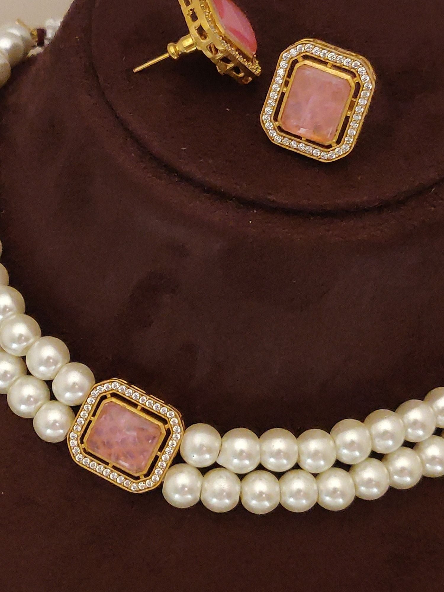 Abdesigns Gold Plated Pearl Choker Necklace Set