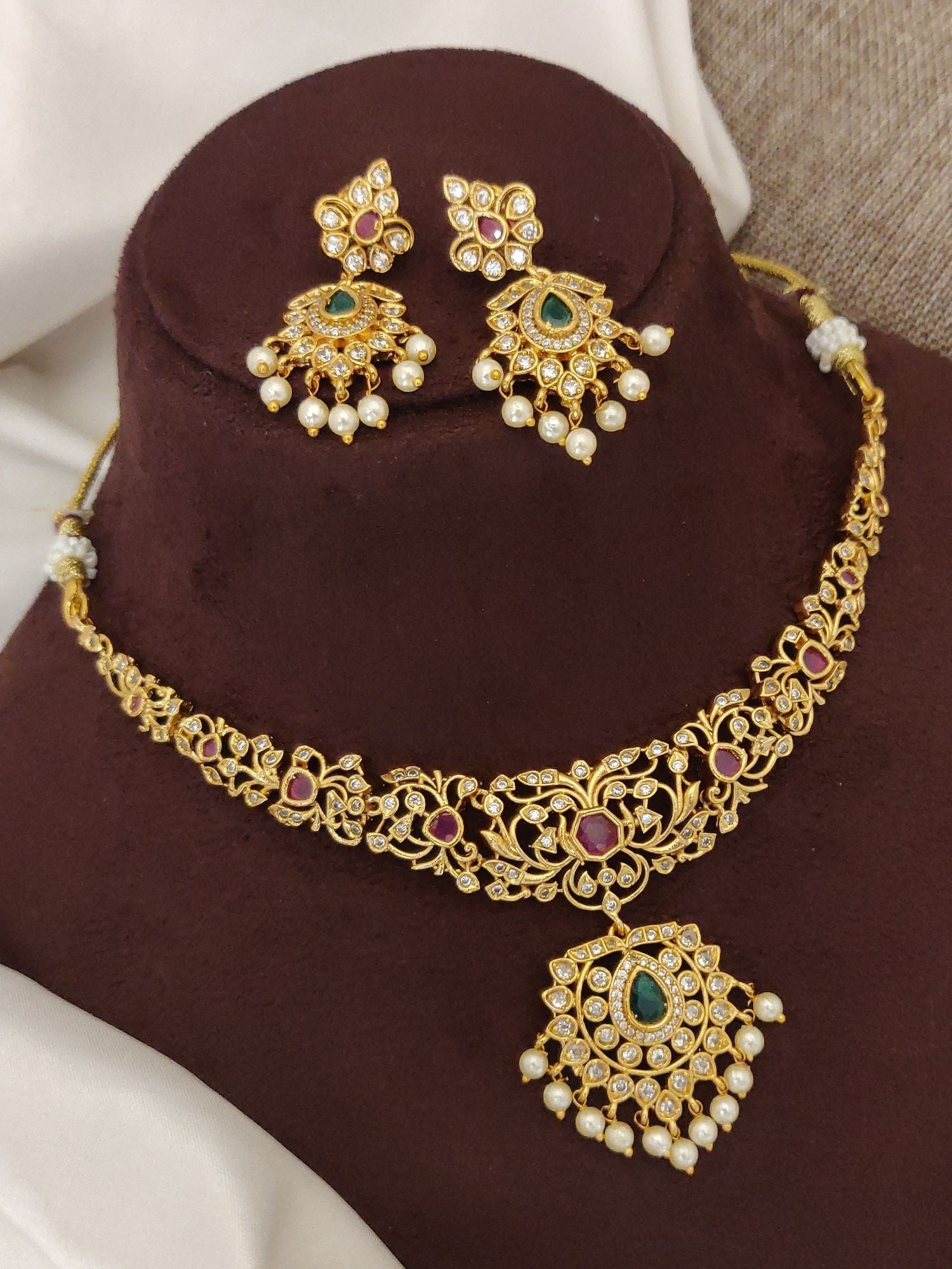 Abdesigns Antique Gold Plated Diamond Necklace Set