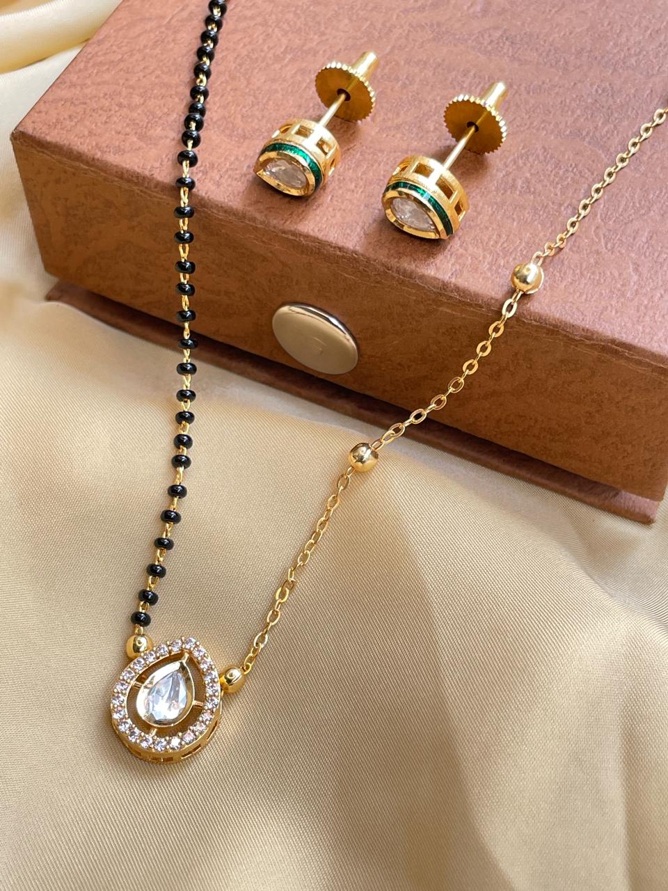 Simple Designer Drop Gold Plated Mangalsutra & Earrings