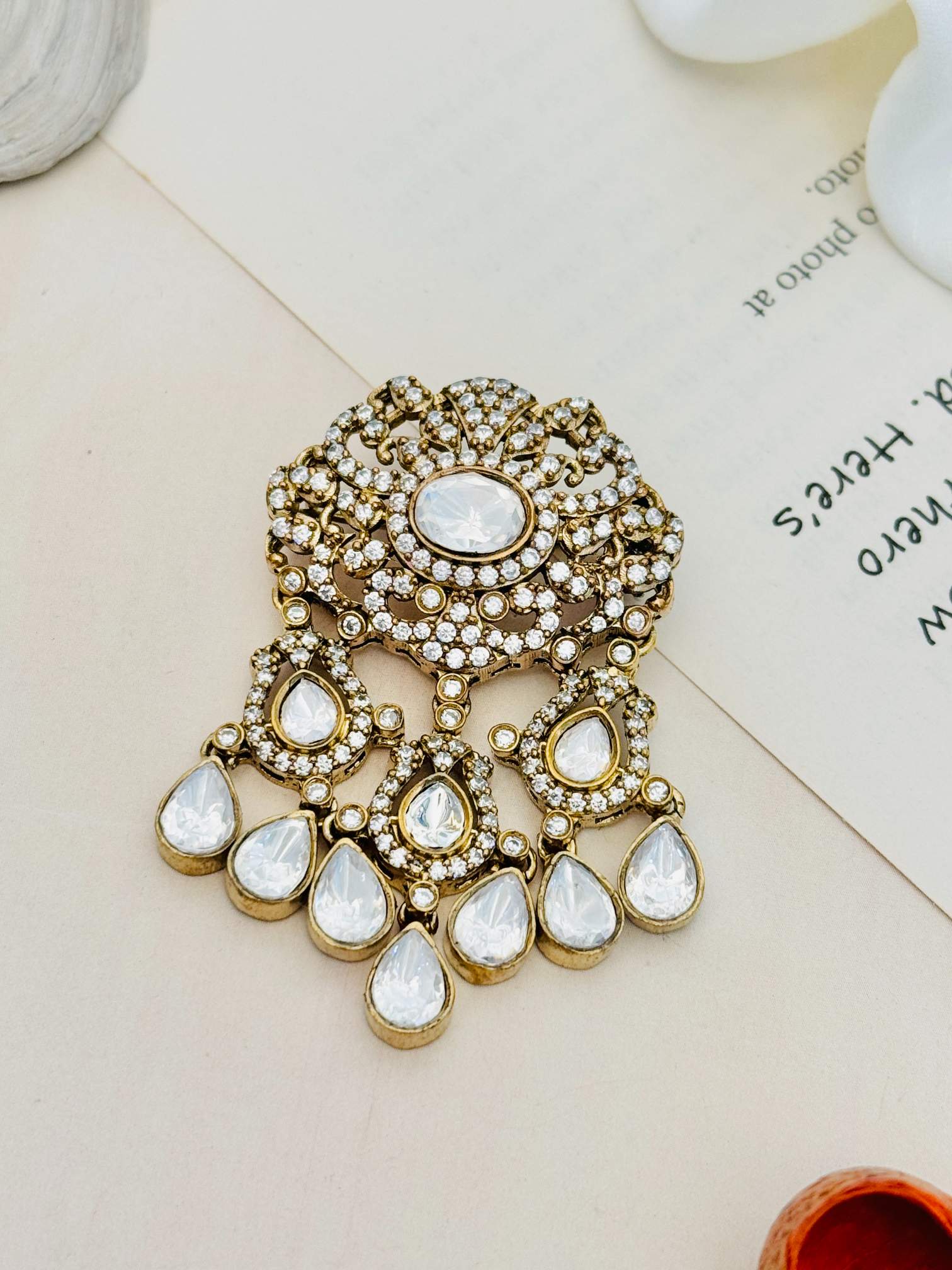 Extravagant Style Gold Plated Polki Men Brooch Pin