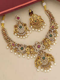 Abdesigns Gold Plated Multicolour Diamond Necklace Set