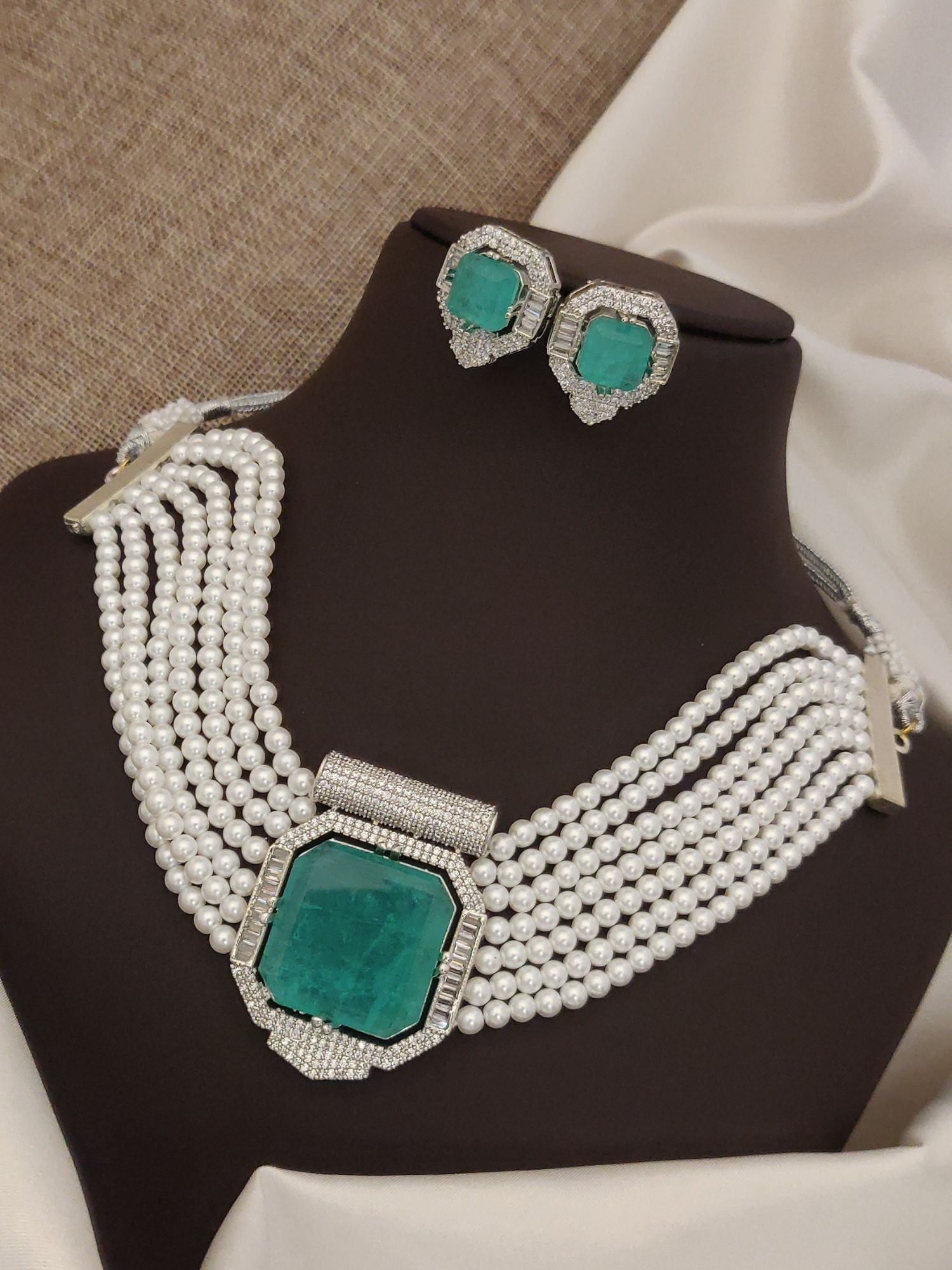 The Latest Silver Plated Pearl Choker Diamond Necklace is versatile. It suits classic, modern, and fusion outfits. The silver plating gives a brilliant shine, but the necklace feels light and comfortable. You can wear it for long hours without discomfort.