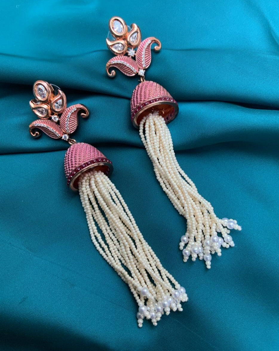 Meenakari Hanging Pearl White Drop Earrings For Women