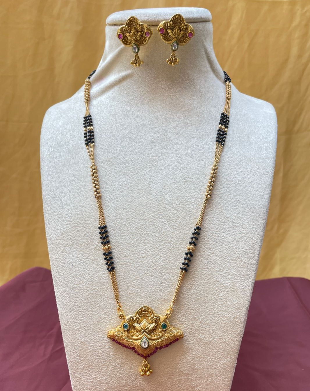 Mangalsutra means an auspicious thread uniting the souls for life long. The Mangalsutra is worn for the long life of the husband. This is a handcrafted product specially made for you. It will surely catch the attention on every occasion.